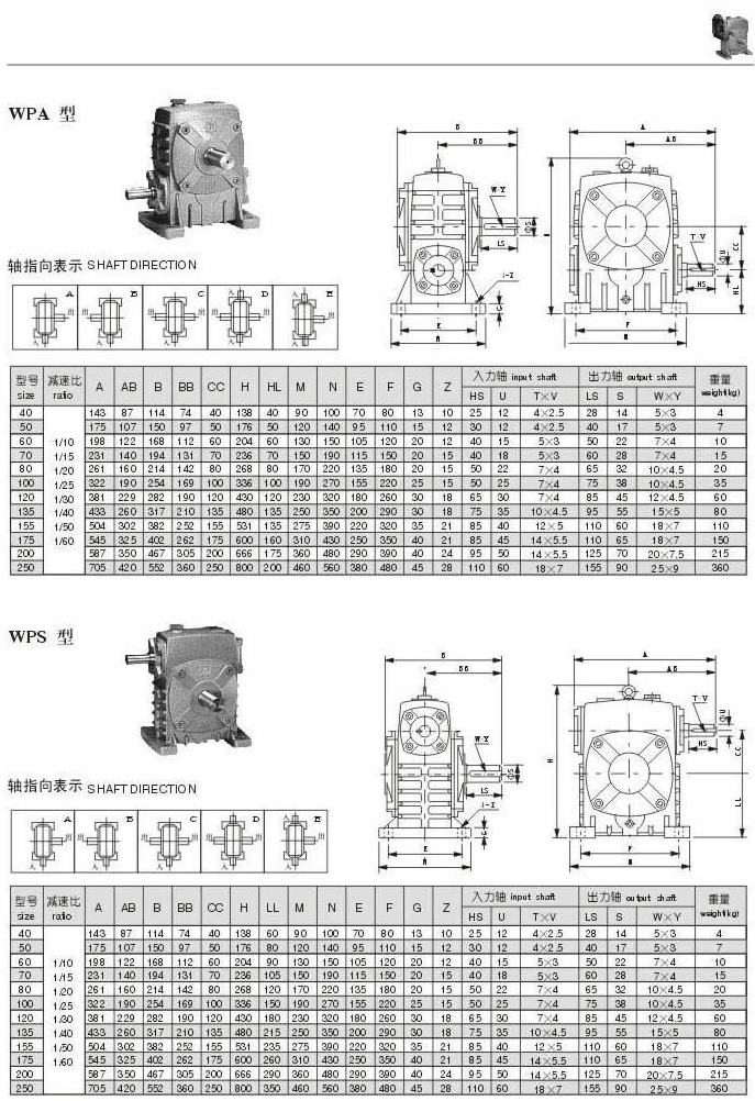 WAP型和WPS型型號參數圖表