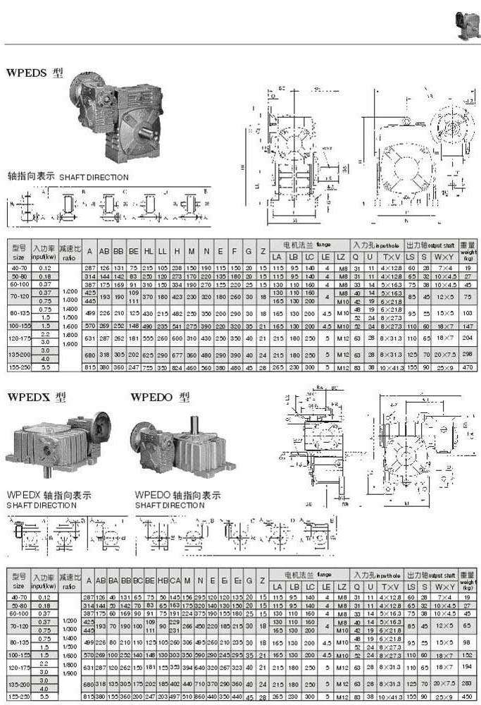 WPEDS,WPEDX,WPEDO型型號參數圖表