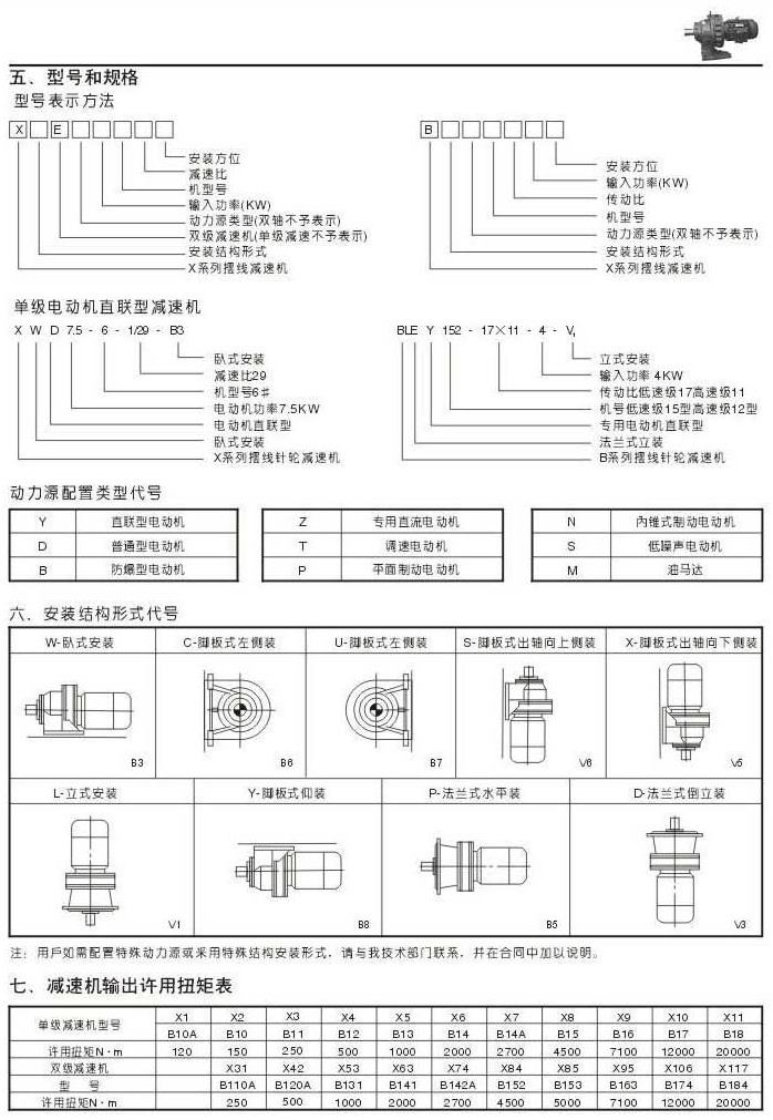 機(jī)型號和規(guī)格表示法安裝結(jié)構(gòu)形式代號減速機(jī)輸出許用扭矩表