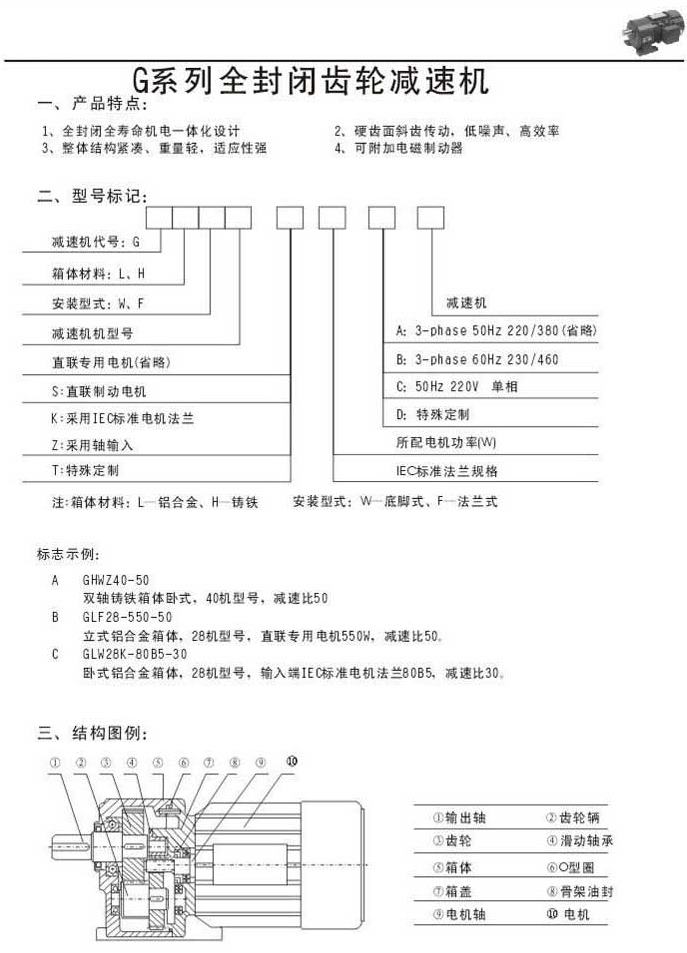 G系列全封閉齒輪減速機產(chǎn)品特點型號標記結(jié)構(gòu)圖例