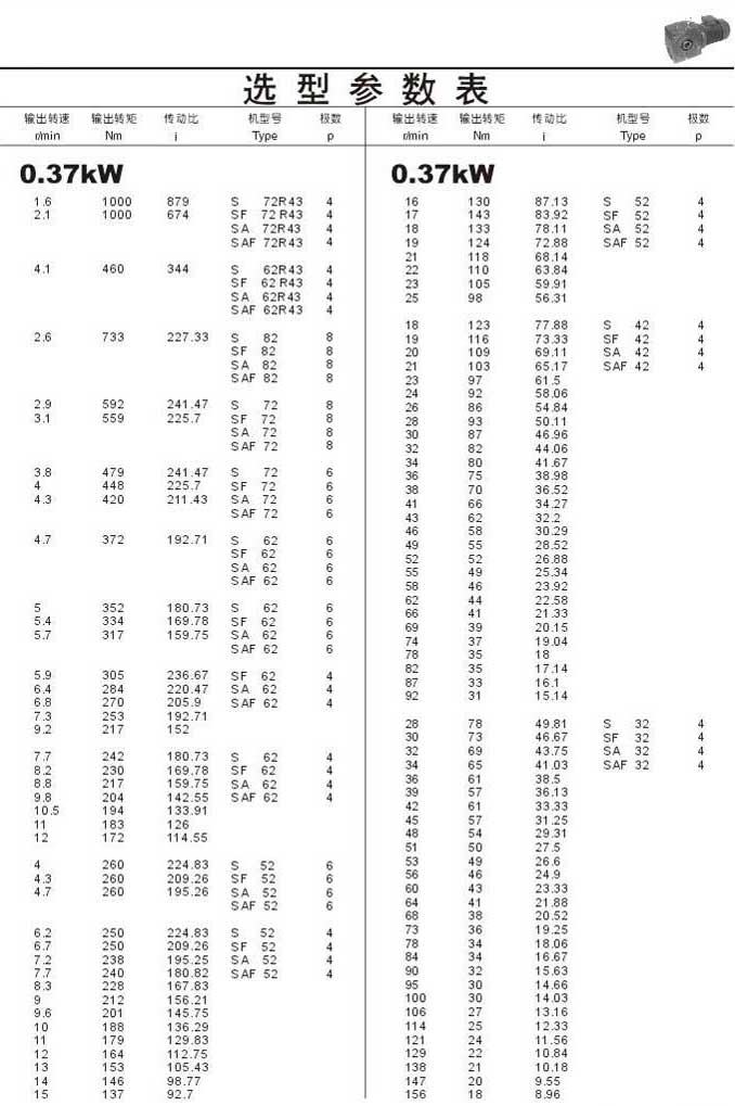 選型參數表0.37kW(續)